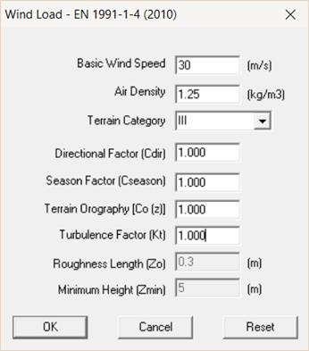 Eurocode 1 EN 1991-1-4 Action on structures (wind load) and EN 1991-1-4 (2010) contains detailed information and formulas for computing wind loads on buildings in various geographic locations. The procedure described in this code has been included in CAEPIPE starting Version 10.30 and can be accessed through this option Layout Window > Misc >Wind Load – EN 1991-1-4 (2010).