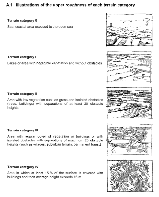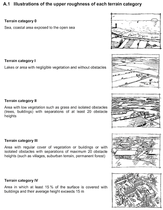 Based on the location of the structure, Terrain Category classification can be obtained from the Annex A and Table A.1 of EN 1991-1-4.