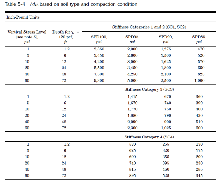 Stiffness Category is required to compute the value of “Msb” the constrained soil modulus of the pipe zone embedment listed in Table 5-4 of AWWA Manual M45 (second edition). See the snapshot shown below.