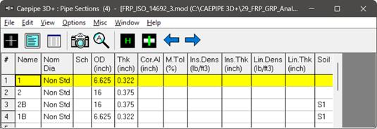 If a part of a piping system uses a certain pipe section with some portion of it buried and the balance not buried, then two separate sections have to be defined, with one of them without soil and the other with soil as shown above for Sections 2 and 2B.
