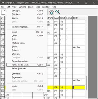 This can be performed through Layout window > Edit > Refine Nodal Mesh > Buried Piping. Please see the section titled “Buried Piping” in CAEPIPE User’s Manual for details on “Nodal mesh generation”.