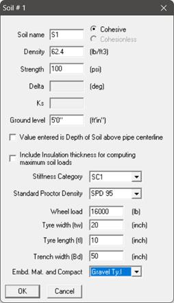 Cohesionless soil is any free-running type of soil, such as sand or gravel, whose strength depends on friction between particles. Cohesionless soil is not applicable for ISO 14692-3. Hence, the option is grayed out in the input screen.