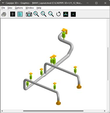 Pipe stress model for the layout shown above is first developed using CAEPIPE. The model is supplied along with this tutorial.