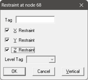 It is assumed that the support shown above does not allow the pipe to move in all three translation directions. Accordingly, this support is modelled as a 3-way Restraint.