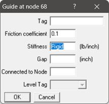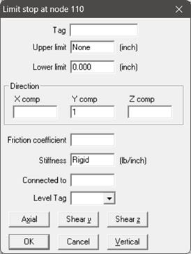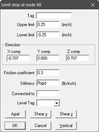 If the piping is skewed in horizontal plane or in 3D space, with Gap and Friction non-zero, then model this support as a Limit Stop as given below.