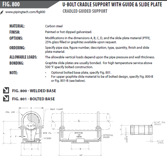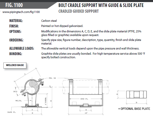 Friction coefficient is input as 0.1 as the PTFE plate reduces the friction between the support and pipe surface. If PTFE plate is not used in the support then change the friction coefficient to a higher value to account for the friction between the support and the structure.