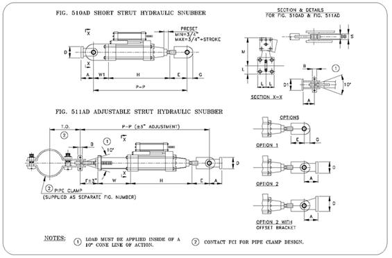 Use Snubber data in CAEPIPE to model the Snubber as shown above. Enter the direction based on direction of the Snubber.