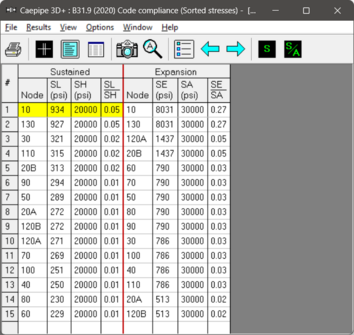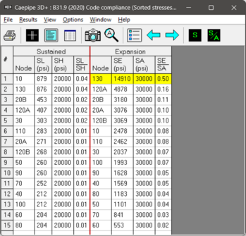From the Sorted Stresses results, it is observed that all stress ratios for Sustained and Expansion load cases are well below 1.0 as before.