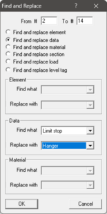 In the existing layout, replace all the Resting Supports (Vertical Limit Stops) with Spring Hangers. In CAEPIPE, this can be easily done by finding and replacing the data type “Limit Stop” with “Hangers” through Edit > “Find and Replace” command as shown in the figure below.