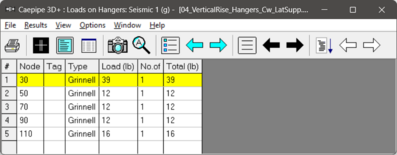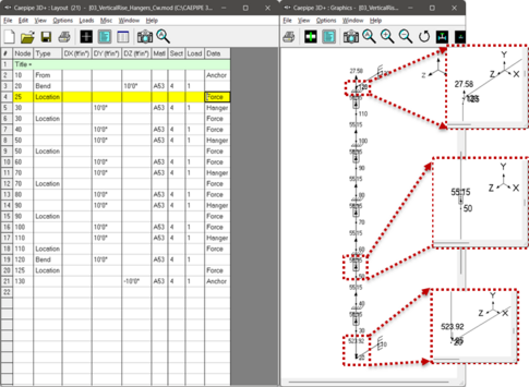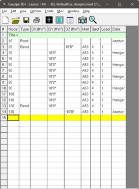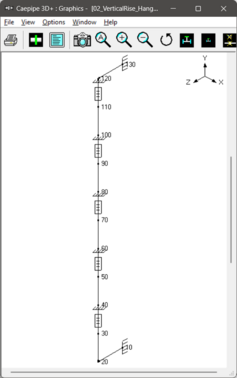 Note: Hangers can support the vertical weight of the pipe but do not provide restraint against lateral movement during a seismic event. To maintain stability of the tall vertical riser under such conditions, lateral supports must be introduced. Section 3 describes how to model these lateral supports for the Occasional load case.