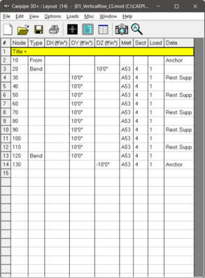 CAEPIPE, a stand-alone stress analysis software included in CAEPIPE 3D+ can model tall vertical risers effectively. However, special care is required when handling fluid weight under Sustained, Operating, and Occasional load cases.