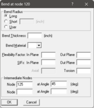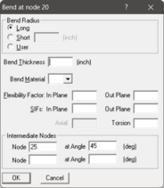Create intermediate nodes 25 and 125 at 45 degrees by editing the Bend at nodes 20 and 120, respectively as shown below.